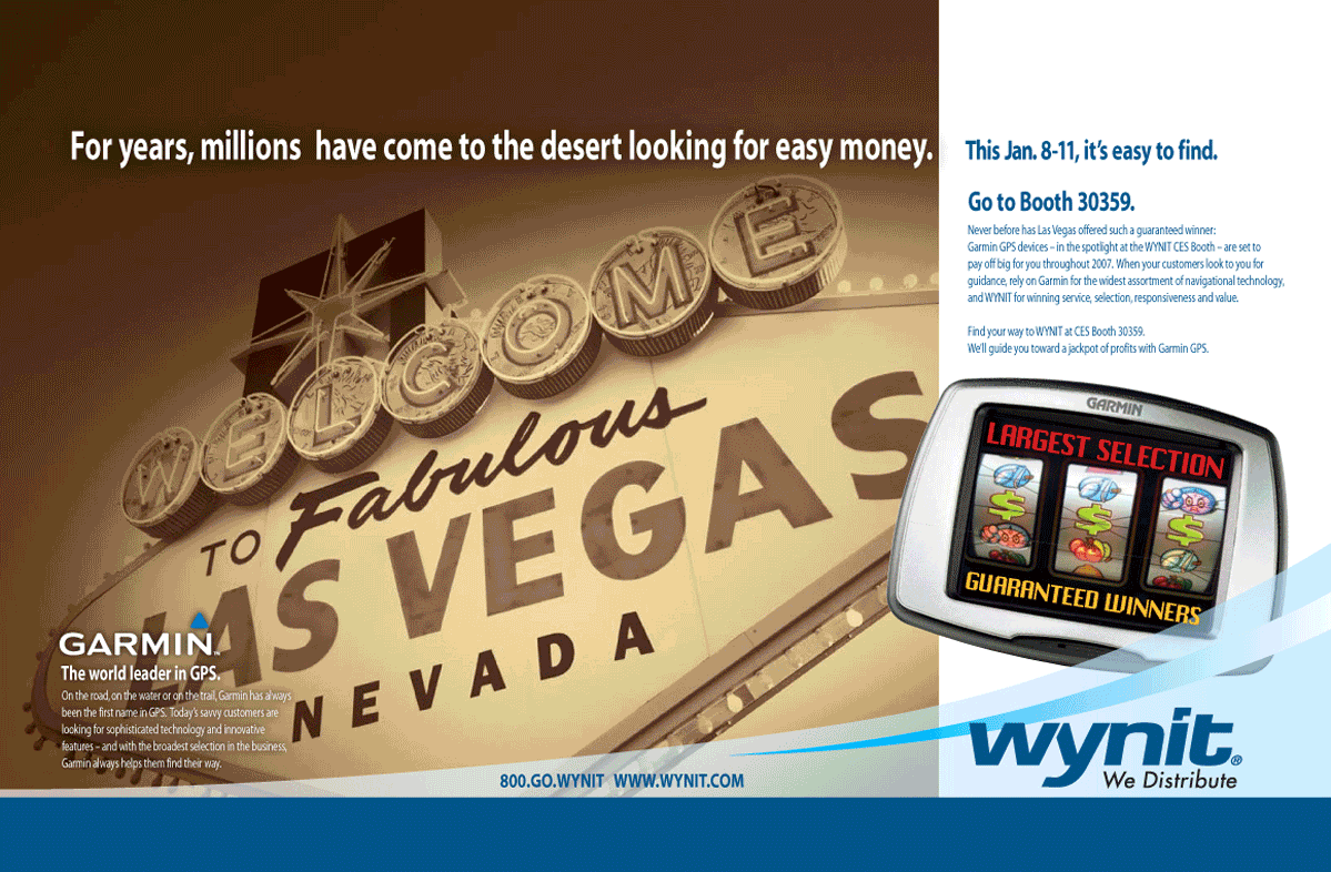 This ad campaign was part of a national dealer program, promoting Garmin/WYNIT presence at the CES, Consumer Electronics Show which takes place in Las Vegas.