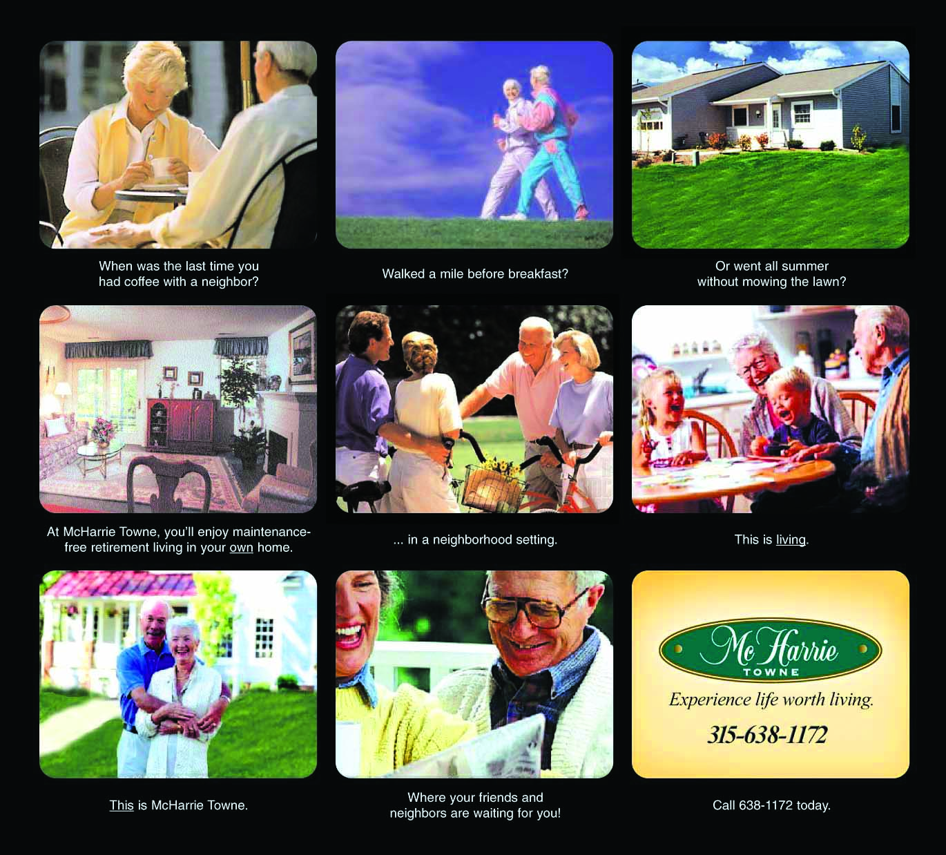 McHarrie Towne is a scenic retirement community that provides an independent, maintenance-free lifestyle. Programs included broadcast production, consumer advertising and email marketing. Below is a sample storyboard concept.