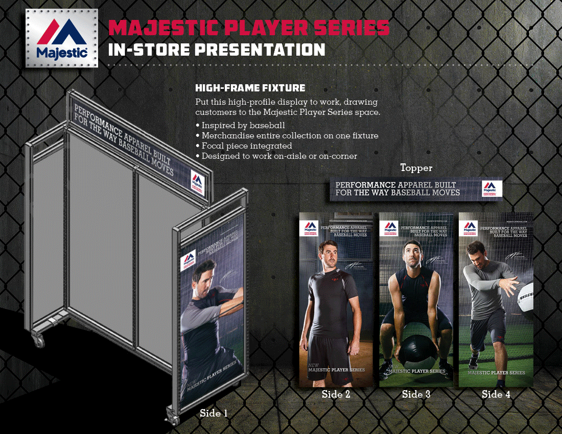 The Majestic Player Series line of performance athletic wear was introduced to national mid-tier retailers. This launch presentation detailed the full-range retail marketing program which was in place to support the launch. This clothing line is currently sold at Dick’s Sporting Goods and other retailers.