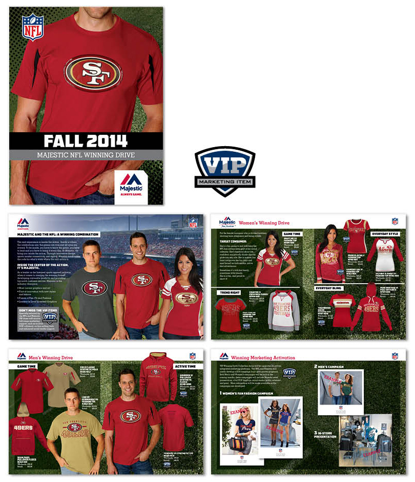 This catalog served as the introduction of several new innovative styles to the NFL apparel line. Items specially selected by NFL and Majestic were denoted by the VIP marketing icon and featured a full-range of retail marketing support collateral.