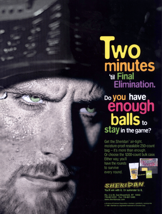 When Crosman Airguns purchased the Sheridan Paintball division, they needed a complete brand identity program. The program included dealer and consumer ads, product catalogs, price lists, photography of the entire product line, multi-language packaging and press campaign direction.
