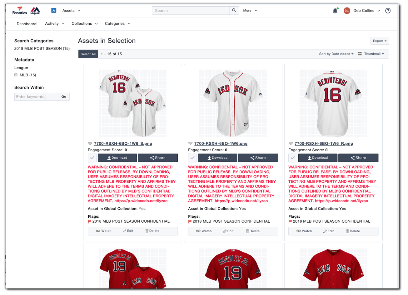 The Majestic brand includes official licensed sports apparel for MLB (Major League Baseball), NBA (National Basketball Association), NFL (National Football League), NHL (National Hockey League) and MLS (Major League Soccer). For the past several years, it has been my responsibility to manage, process and distribute digital assets for these leagues.. Working with the Majestic Sales Force, images are created year-round to satisfy seasonal and hot-market image demands. Links are delivered to global and national retailers, providing images for use in their marketing promotions. Confidential images are safely distributed in advance of hot-market events, enabling retailers to prepare marketing materials ahead of time.